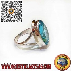 Elegante anillo artesanal de plata 925, con un topacio azul natural ovalado engastado en un borde liso y sencillo. Una joya luminosa y refinada, perfecta para quienes aprecian los diseños discretos pero elegantes. Ideal para uso diario o como regalo especial.