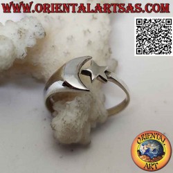 Anillo de plata suave con estrella y luna cercanas pero separadas (ajustable)