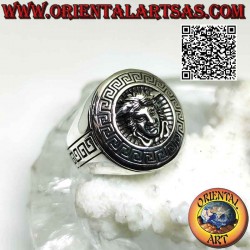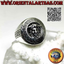 Anillo redondo liso de plata con emblema "Versace" (la mitológica cabeza de Medusa)