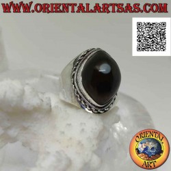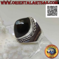 Anillo de plata con ágata ojo de Shiva negra en lanzadera y borde de cadena en engaste liso (g)