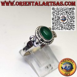 Un elegante anillo artesanal en plata 925, con una preciosa ágata verde natural ovalada en el centro, adornada con delicadas espirales a los lados, símbolo de energía vital y equilibrio. El ágata verde ha sido apreciada desde la antigüedad como piedra de armonía, prosperidad y protección, favoreciendo la calma interior y el crecimiento personal. Su intenso tono verde refleja la fuerza regeneradora de la naturaleza, convirtiendo este anillo en una joya con profundo significado simbólico.