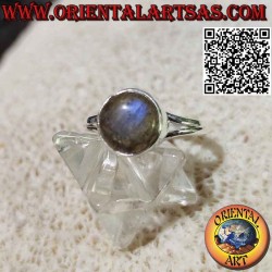 Anillo de plata con cabujón redondo de labradorita con orla sencilla y calado triangular en los laterales