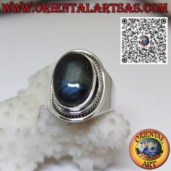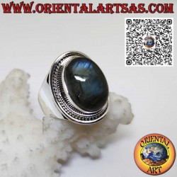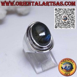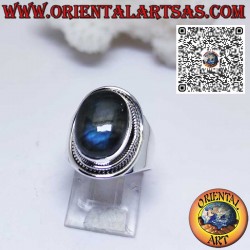 Precioso anillo de plata con espléndido anillo de Labradorita natural ovalada engastada y rodeada, con engaste de banda ancha, hecho a mano en plata maciza 925 ‰ hipoalergénica. Cinco centavos gratis
