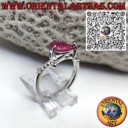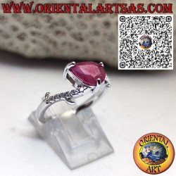 Elegante anillo de Plata 925 con rubí natural en forma de gota montado de lado. La montura asimétrica con circonitas blancas aporta brillo y un estilo único. Ideal como regalo especial o joya para cada día.