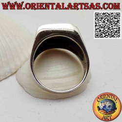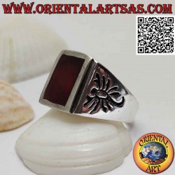 Anillo de plata con cornalina rectangular enrasada y escorpión grabado en los laterales