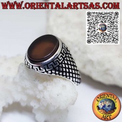 Anillo de Plata 925 con Cornalina Natural Ovalada y Decoraciones en...