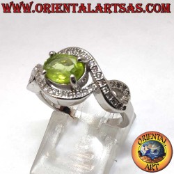 Elegante anillo de alta joyería en Plata 925 con un peridoto natural oval de 7x5 mm, rodeado por un nudo infinito engastado con zircones. Símbolo de amor eterno, energía positiva y renacimiento. Peso 3,8 gramos. Una joya preciosa de profundo significado.
