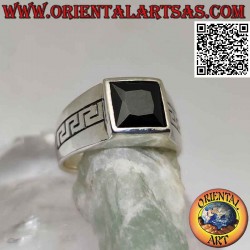 Anillo de plata con espinela cuadrada y grabado griego en los laterales
