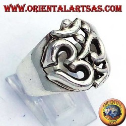 Místico anillo de banda en plata 925 envejecida. Presenta il símbolo OM calado en el centro, emblema universal de paz interior y armonía.