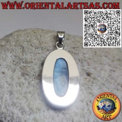 Hermoso colgante de plata con un gran cabujón ovalado de larimar natural. Conocido como la piedra del Caribe, el larimar es raro y valorado por sus tonalidades azules que evocan el mar tropical.