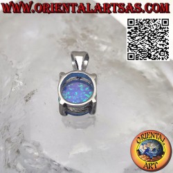 Colgante rodiado con ópalo azul redondo con engaste de plata 925 ‰ engastado con cuatro puntas