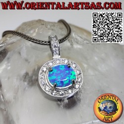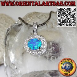 Colgante rodiado con ópalo azul redondo con engaste de plata 925 ‰ engastado con cuatro puntas