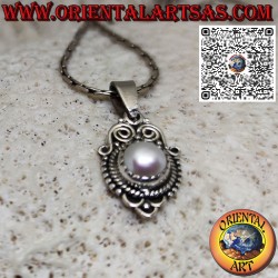 Colgante hipoalergénico de plata 925 ‰ con perlas cultivadas engastadas y rodeadas de estilo barroco. Realizado en plata 925 ‰ sin níquel, la superficie está parcialmente bruñida para resaltar la elaboración y garantizar su belleza a lo largo de los años. (el colgante no está tratado ni chapado sino en plata maciza)