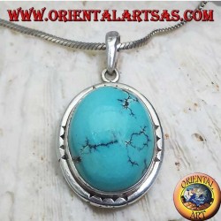Raro y precioso colgante en Plata 925 con turquesa tibetana antigua natural, de Nepal. Una pieza única de profundo significado espiritual, símbolo de protección, sabiduría y prosperidad. Dimensiones 27x23 mm, peso 13,5 gramos.