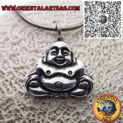 Colgante refinado de Plata 925 que retrata al Buda Sonriente (Hotei o Budai), amuleto popular de fortuna, abundancia y felicidad. Su barriga redonda es considerada un símbolo de buena suerte.