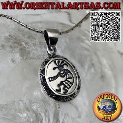 Colgante de plata: Medallón ovalado con grabado de Kokopelli, el flautista de la fertilidad. Un homenaje a la alegría, la música y la fertilidad