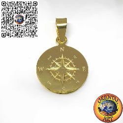 Colgante de plata 925 chapado en oro con rosa de los vientos grabada, símbolo de guía y protección. Elegancia con un toque espiritual.