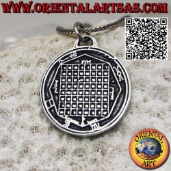 El colgante de plata Talismán del Cuadrado Mágico y Pentáculo de Mercurio representa una combinación de poderosos símbolos mágicos asociados con Mercurio, el dios romano del comercio, la comunicación y los viajes. Este colgante se puede utilizar para atraer la energía positiva de Mercurio y para obtener protección y suerte en actividades comerciales, estudios y viajes.