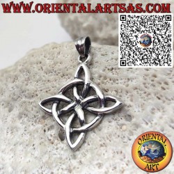 Colgante artesanal en plata de ley 925 con el Nudo de la Bruja, antiguo emblema de protección y poder mágico. Usado en tradiciones paganas, celtas y Wicca como talismán contra energías negativas, mal de ojo e influencias no deseadas. Representa la unión de los cuatro elementos en un tejido infinito, símbolo de equilibrio y conexión espiritual.