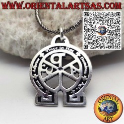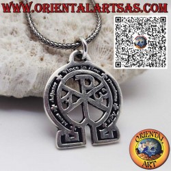 Colgante de plata finamente trabajado, que presenta el Cristograma o Chi-Rho, antiguo símbolo cristiano formado por las letras griegas entrelazadas “Chi” y “Rho”, primeras letras de Cristo (ΧΡΙΣΤΟΣ). Usado desde el Imperio Romano y popularizado por Constantino el Grande, representa la fe, la victoria espiritual y la protección divina.
