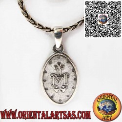 Elegante colgante de plata 925 con la Medalla Milagrosa, símbolo de fe y protección. En una cara muestra a la Virgen María con la inscripción “Oh María concebida sin pecado, ruega por nosotros que recurrimos a ti”, y en la otra el monograma mariano con la cruz, los corazones sagrados y las doce estrellas. Una joya espiritual de gran significado.