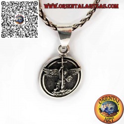 Colgante redondo en plata 925 con San Miguel Arcángel en bajo relieve. Símbolo de protección y fe, ideal como talismán o regalo religioso.