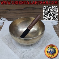 Preciosa campana tibetana de 20 cm de diámetro, peso 1082 g, frecuencia hz 208, hecha a mano con siete metales que contienen cobre, estaño, zinc, hierro, plata, oro y níquel. Se juega golpeando o frotando el borde con un mazo de madera o cuero. de origen Nepal Nota Pieza única, completa con aldaba.