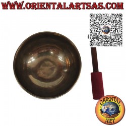 El cuenco tibetano hecho a mano, con un diámetro de 13 cm y un peso de 450 g, está afinado en la nota "D" con una frecuencia de 440 Hz, un tono perfecto para estimular la energía del segundo chakra, asociado a la creatividad y a las emociones. Esta campana está hecha de una aleación de siete metales: oro, plata, mercurio, cobre, hierro, estaño y plomo, cada uno de los cuales simboliza un planeta según la tradición astrológica tibetana. La combinación de estos metales le da a la campana una resonancia profunda y una gama de tonos ricos y armónicos. El sonido producido es vibrante, claro y duradero, ideal para prácticas de meditación, relajación y sanación sonora. Acompañada de un badajo de madera revestido de fieltro, la campana puede tocarse golpeando o frotando el borde para obtener un sonido suave y envolvente. Este instrumento no sólo es funcional sino también un objeto de gran valor cultural y espiritual, ideal para sesiones de yoga, meditación y terapias de sonido, creando una atmósfera de paz y armonía que enriquece la experiencia personal y espiritual.