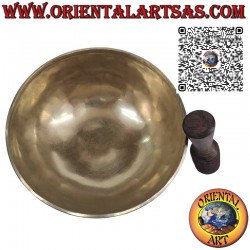 La campana tibetana "Nirmala", con un diámetro de 24 cm y un peso de 1500 g, es una obra artesanal de gran prestigio, hecha a mano con una preciosa aleación de siete metales: oro, plata, mercurio, cobre, hierro, estaño y plomo. Afinada en la nota "C" con una frecuencia de 130 Hz, esta campana emite un sonido profundo y resonante, ideal para estimular el primer chakra, el raíz, y promover una sensación de arraigo y estabilidad. La campana produce un tono potente y envolvente, perfecto para prácticas de meditación profunda, relajación y terapias sonoras. El badajo de madera, a menudo recubierto de fieltro, permite obtener un sonido suave y rico, tanto golpeando como frotando el borde de la campana. Su generoso tamaño y su considerable peso le confieren una calidad de sonido robusta y envolvente, haciendo de la campana una valiosa herramienta para experiencias meditativas avanzadas y prácticas de yoga. Cada pieza es un testimonio de la artesanía y la tradición espiritual tibetanas, y ofrece una experiencia sonora profunda y auténtica.