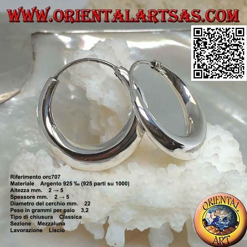Pendientes de plata, círculos de media luna lisos simples de 22 mm a 45 mm (clásicos)
