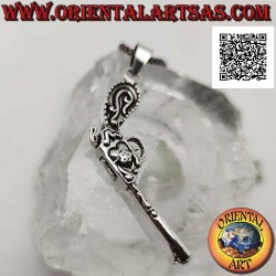 Colgante artesanal de plata 925 con forma de pistola revólver y detalladas decoraciones en bajorrelieve.