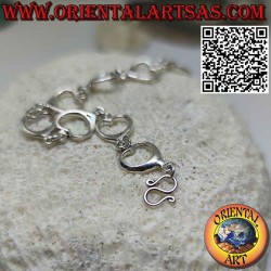 Pulsera con once corazones en fila unidos por un anillo de plata 925‰ hipoalergénica libre de níquel. La superficie está parcialmente bruñida y no chapada, lo que garantiza su belleza a lo largo de los años. pieza única hecha a mano en Tailandia a mano