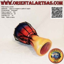 El cuerpo del djembé está fabricado con madera de caoba procedente de plantaciones sostenibles y está fabricado íntegramente con productos naturales, siendo fabricado por pequeños artesanos en las condiciones más sencillas (no un producto industrial), no se pueden evitar ligeras variaciones de color de la madera / cuero. así como irregularidades naturales y ligeras diferencias de color.