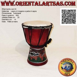 El cuerpo del djembé está fabricado con madera de caoba procedente de plantaciones sostenibles y está fabricado íntegramente con productos naturales, siendo fabricado por pequeños artesanos en las condiciones más sencillas (no un producto industrial), no se pueden evitar ligeras variaciones de color de la madera / cuero. así como irregularidades naturales y ligeras diferencias de color.