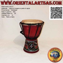 El cuerpo del djembé está fabricado con madera de caoba procedente de plantaciones sostenibles y está fabricado íntegramente con productos naturales, siendo fabricado por pequeños artesanos en las condiciones más sencillas (no un producto industrial), no se pueden evitar ligeras variaciones de color de la madera / cuero. así como irregularidades naturales y ligeras diferencias de color.