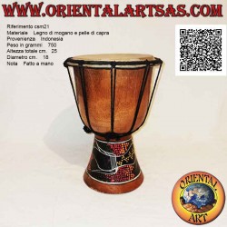 El cuerpo del djembé está fabricado con madera de caoba procedente de plantaciones sostenibles y está fabricado íntegramente con productos naturales, siendo fabricado por pequeños artesanos en las condiciones más sencillas (no un producto industrial), no se pueden evitar ligeras variaciones de color de la madera / cuero. así como irregularidades naturales y ligeras diferencias de color.