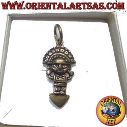Poderoso colgante en bronce que representa el Tumi peruano, el antiguo cuchillo ceremonial de las culturas precolombinas Moche, Sicán e Inca. Símbolo nacional del Perú, representa fuerza, vida, protección y buena suerte. La característica hoja en medialuna y el mango con figura de hombre pájaro (Naylamp) hacen esta pieza única. Dimensiones 30x10 mm, peso 2,3 gramos.