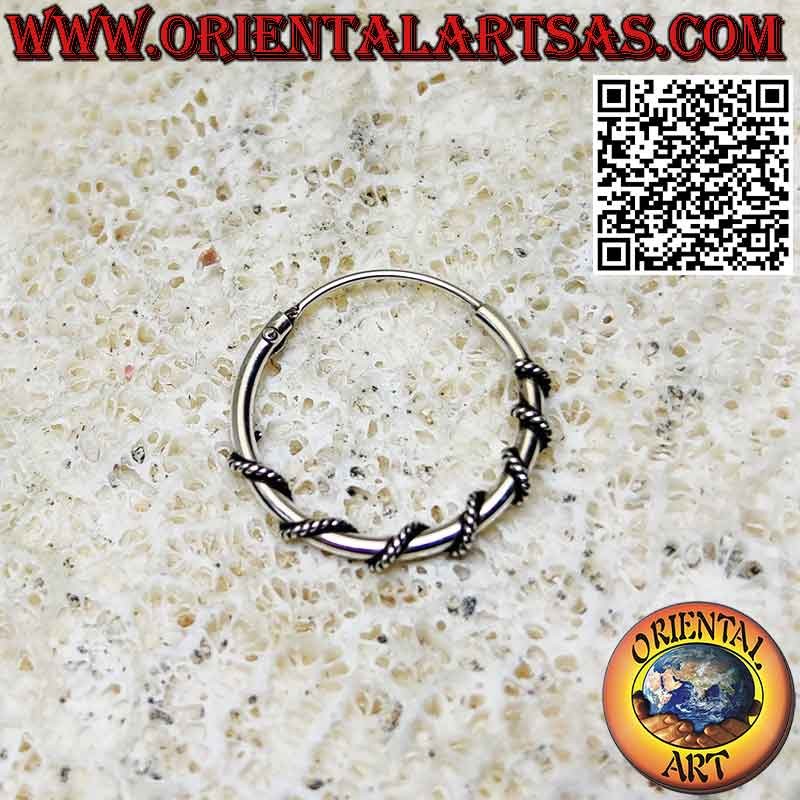 Pendiente de aro de alambre de púas en plata 925 ‰ hipoalergénica. La superficie está parcialmente bruñida para resaltar la mano de obra y garantizar su belleza a lo largo de los años. (el anillo no está tratado ni chapado sino en plata maciza)
