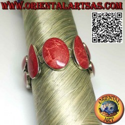 Pulsera de plata 925 ‰ hipoalergénica sin níquel con 10 madréporas rojas multiformes naturales (coral), hecha a mano en Indonesia