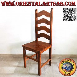 Elegante silla de madera de teca maciza, con un imponente respaldo alto y listones horizontales curvos de estilo imperial. Artesanía indonesia de alta calidad.