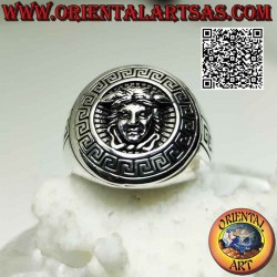 Bague ronde en argent lisse avec emblème "Versace" (la tête de Méduse mythologique)