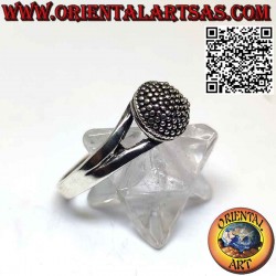 Bague élégante avec un hémisphère parsemé de points fait à la main dans l'île de Bali par des artisans, en argent 925 ‰ hypoallergénique. La surface est partiellement brunie pour mettre en valeur le travail et assurer sa beauté au fil des ans. (l'anneau n'est ni traité ni plaqué mais en argent massif) sans nickel