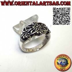 Bague élégante avec motif floral et marguerite centrale en haut relief faite à la main sur l'île de Bali par des artisans, en argent 925 ‰ hypoallergénique. La surface est partiellement brunie pour mettre en valeur le travail et assurer sa beauté au fil des ans. (l'anneau n'est ni traité ni plaqué mais en argent massif) sans nickel