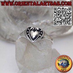 Bague coeur arrondi immergé dans le coeur, réalisée en argent 925 ‰ hypoallergénique sur l'île de Bali par des artisans qualifiés. La surface est partiellement brunie pour mettre en valeur le travail et garantir sa beauté au fil des années. (la bague n'est ni traitée ni plaquée mais en argent massif) sans nickel
