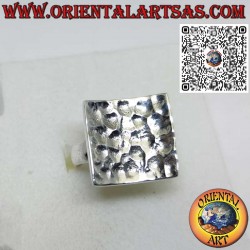 Une bague artisanale en argent 925, de forme carrée concave avec une finition martelée. Réalisée à la main par les Karen, un peuple montagnard d’Asie du Sud-Est réputé pour son savoir-faire ancestral dans le travail de l’argent.