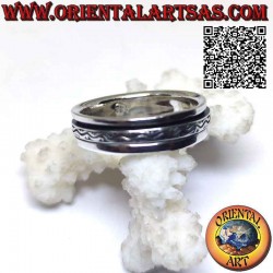 Cette bague a la particularité d'être composée de deux anneaux qui tournent l'un sur l'autre, afin d'avoir une fonction anti-stress en argent 925‰ hypoallergénique façonné à la main avec des rainures labyrinthes. Bijou en argent 925‰ hypoallergénique. La surface est partiellement brunie et n'est ni traitée ni plaquée, ce qui garantit sa beauté au fil des ans.