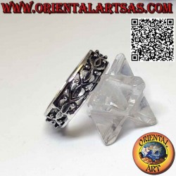 Anneau de bande de 7 mm de large. perforé de sphères superposées en argent hypoallergénique 925. La surface est partiellement brunie pour mettre en valeur le travail et garantir sa beauté au fil des ans. (l'anneau n'est ni traité ni plaqué mais en argent massif) sans nickel