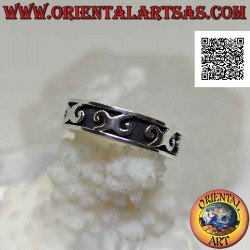 Bague en argent travaillée avec une série de lettre grecque "Chi" (X) en bas-relief