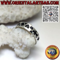 Bague en argent travaillée avec une série de demi-cercles opposés...