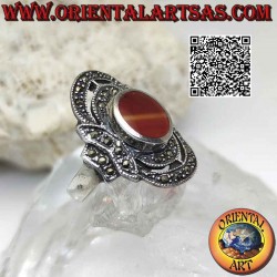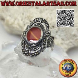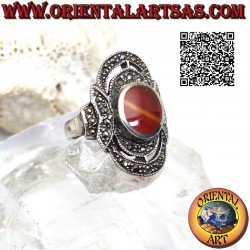 La pierre principale est une cornaline naturelle et une série de marcassites sont serties autour d'elle.
